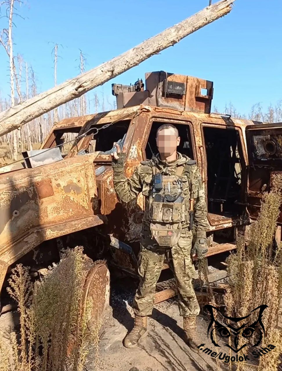 Уничтоженные украинский танк и бронеавтомобиль "Козак" в освобождённом Серебрянском лесничестве, Луганская область (РФ)