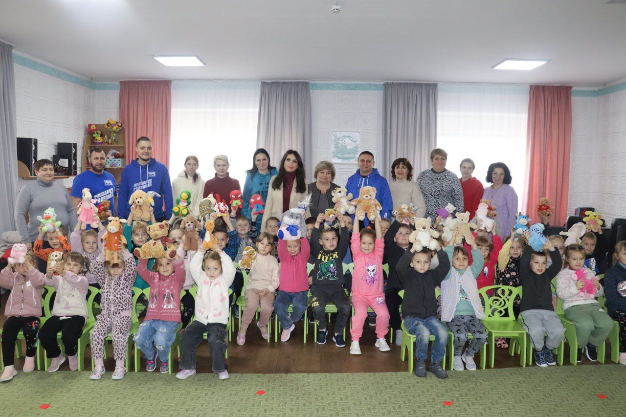 Малышам рассказали о предстоящем празднике – Дне народного единства, а также подарили мягкие игрушки, спортивный инвентарь, пазлы, развивающие игры и наборы для творчества.