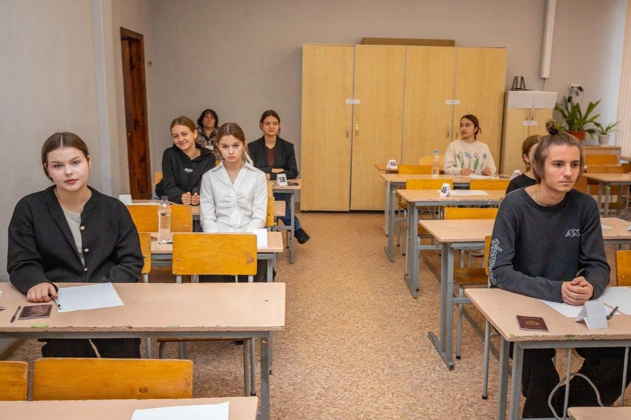 Условия максимально приблизили к реальным: участники сдали вещи, прошли контроль, заполнили бланки и выполнили задания в отведённое время.