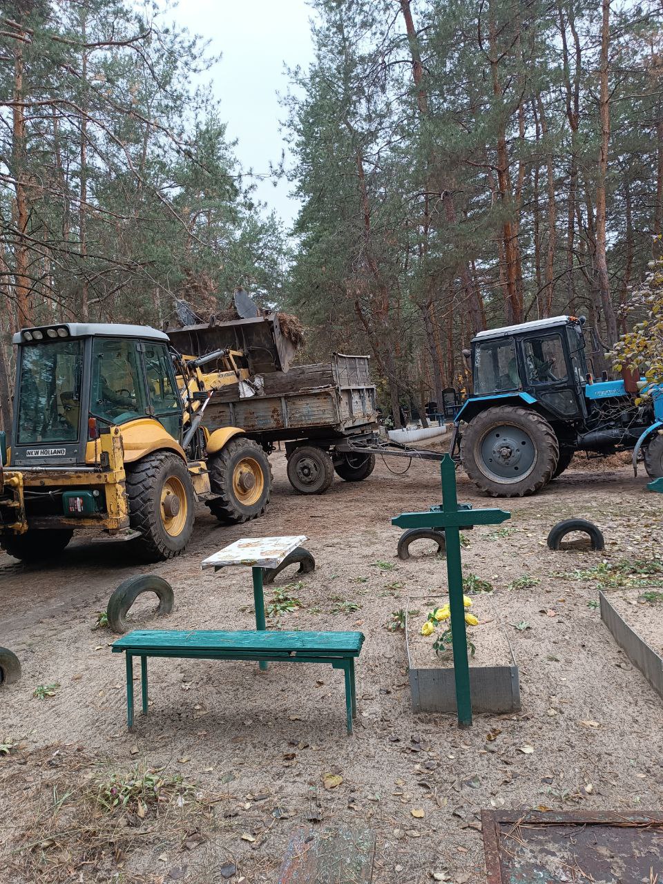 Совместными усилиями МБУ "Ритуальная служба", МБУ "Благоустройство" и МУП "Старобельский элеватор" проведена работа по уборке и вывозу накопившегося мусора на территории кладбища в селе Чмыровка.