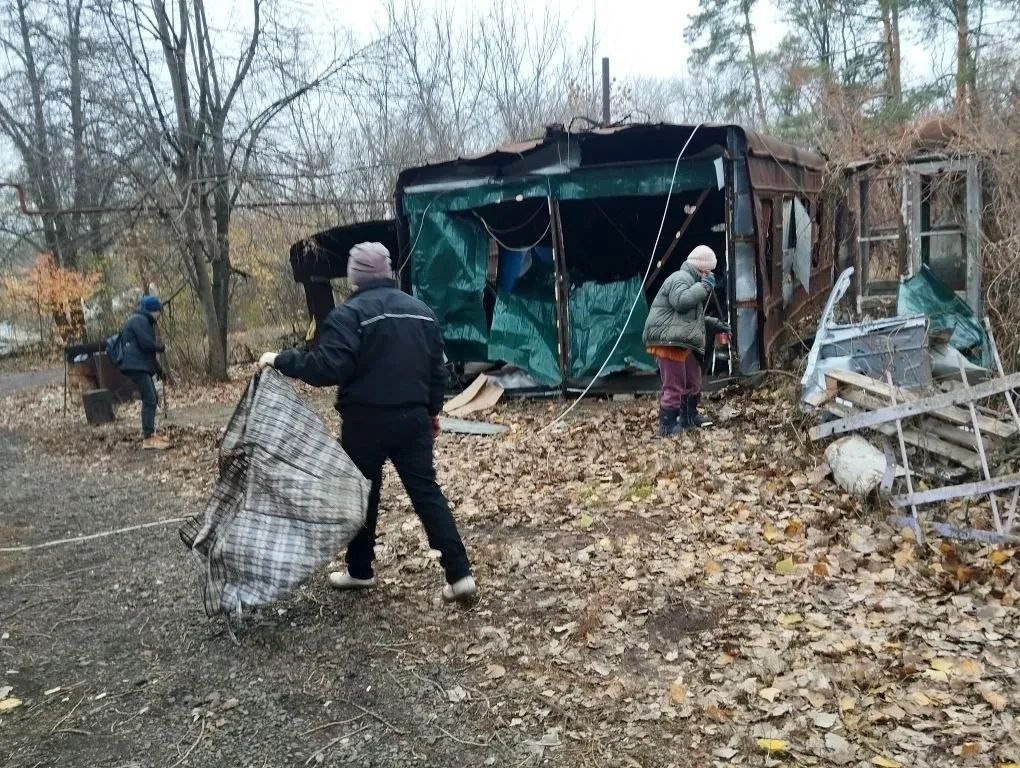 На месте работают сотрудники Свердловского филиала "Единой управляющей компании" и "Экосервиса". Ведется вывоз строительного мусора с использованием спецтехники.