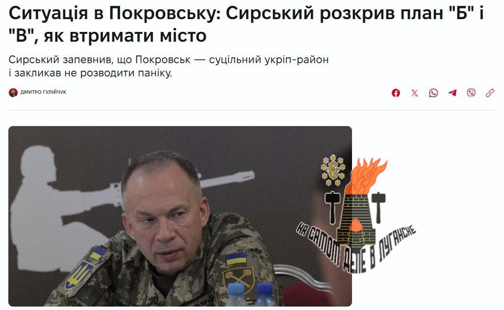 Сырский заявил о «контролируемой ситуации» в Покровске, где, по его словам, у ВСУ есть планы «Б» и «В»