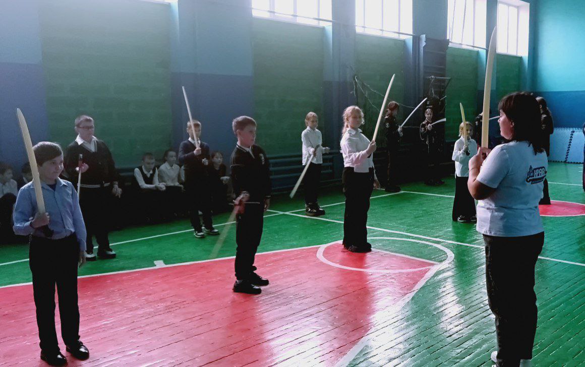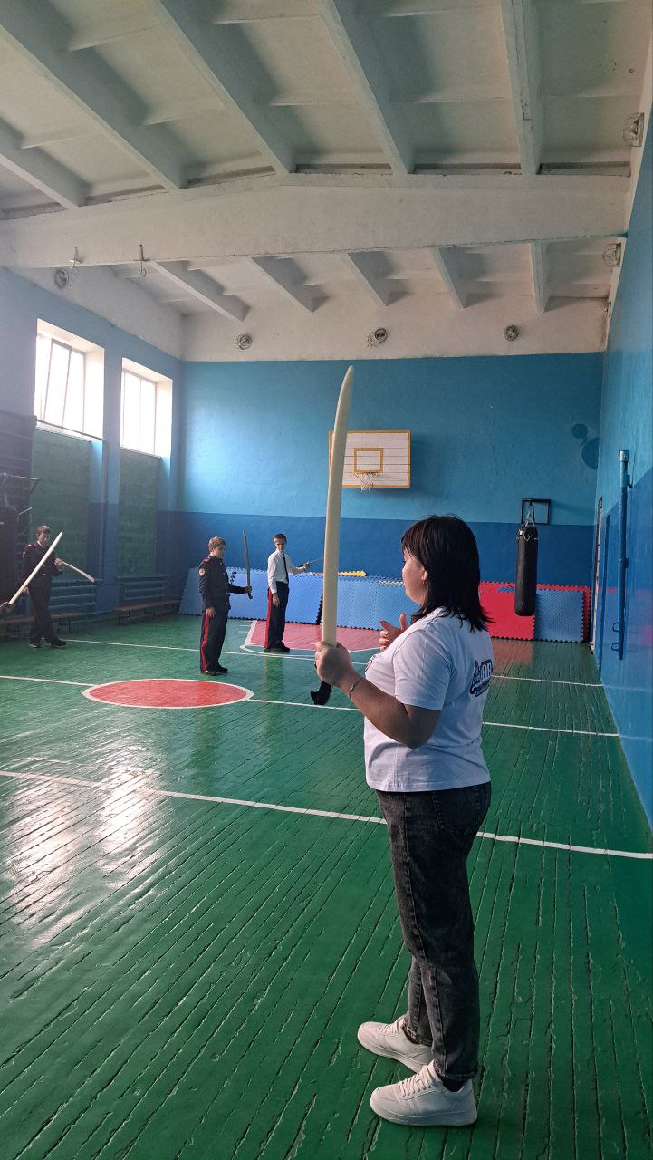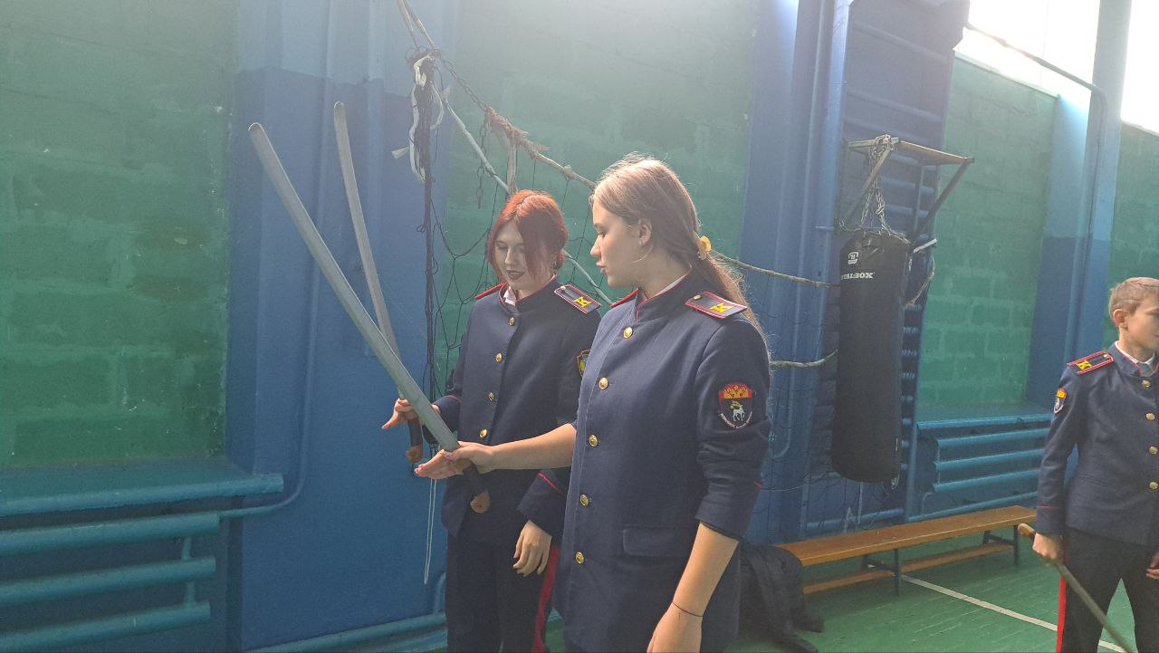 В "Станично-Луганской средней школе имени Грекова П.М. " состоялся мастер-класс по фланкировке казачьей шашкой для учеников 5 класса и 8-А казачьего класса.