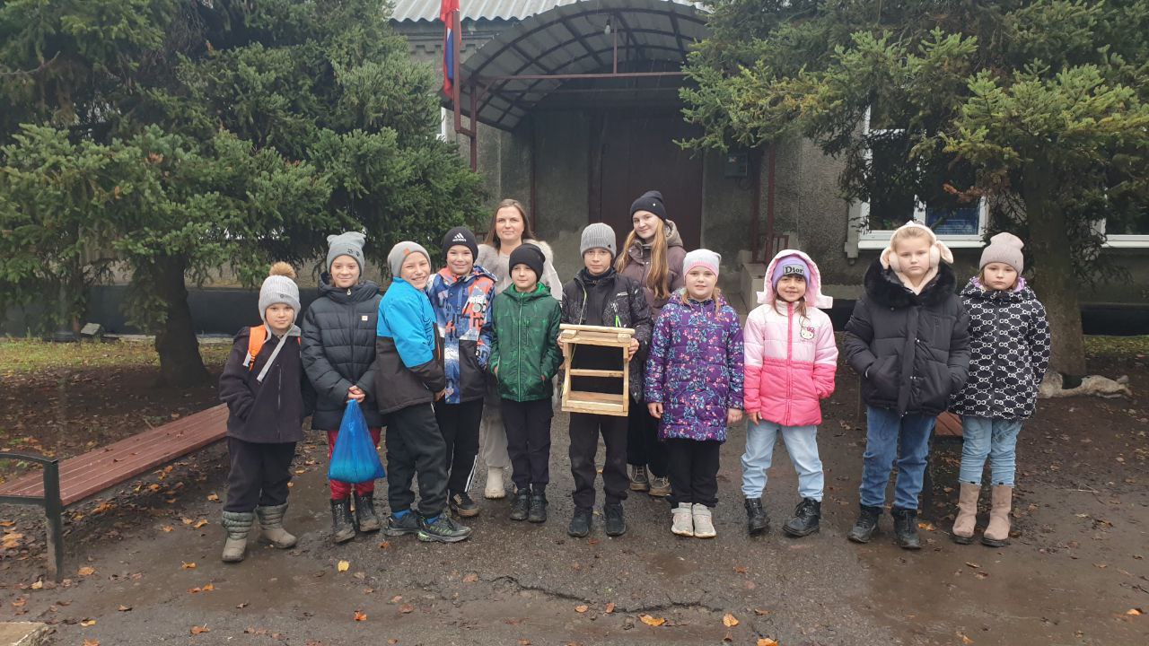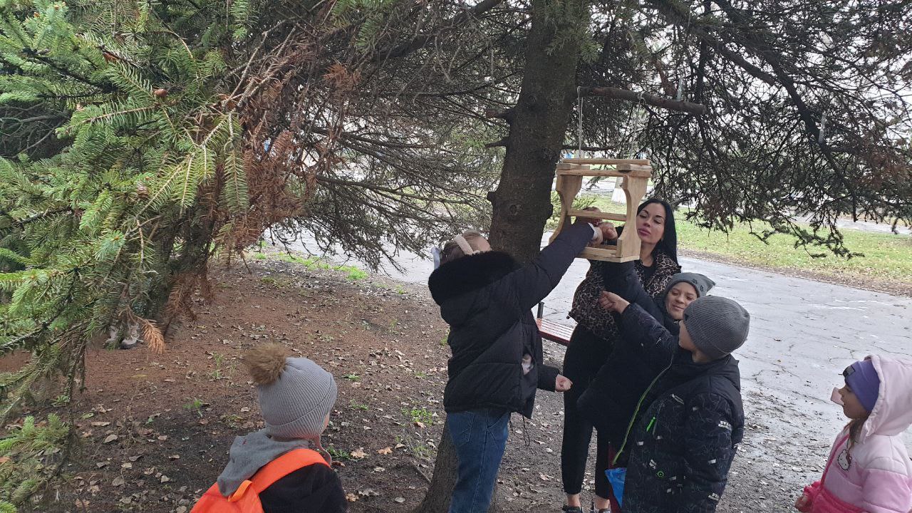 Дети села Голубовка Кременского МО сделали своими руками замечательную кормушку для всех птичек и наполнили её разными вкусностями.Теперь возле Голубовского сельского клуба на ёлке висит кормушка, и дети будут кормить птичек целую зиму.
