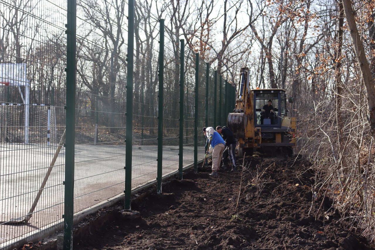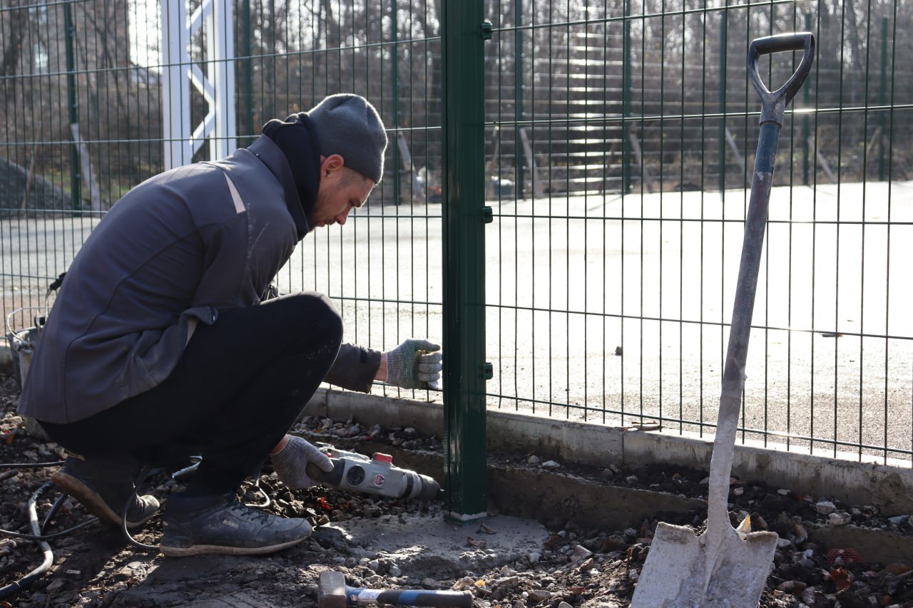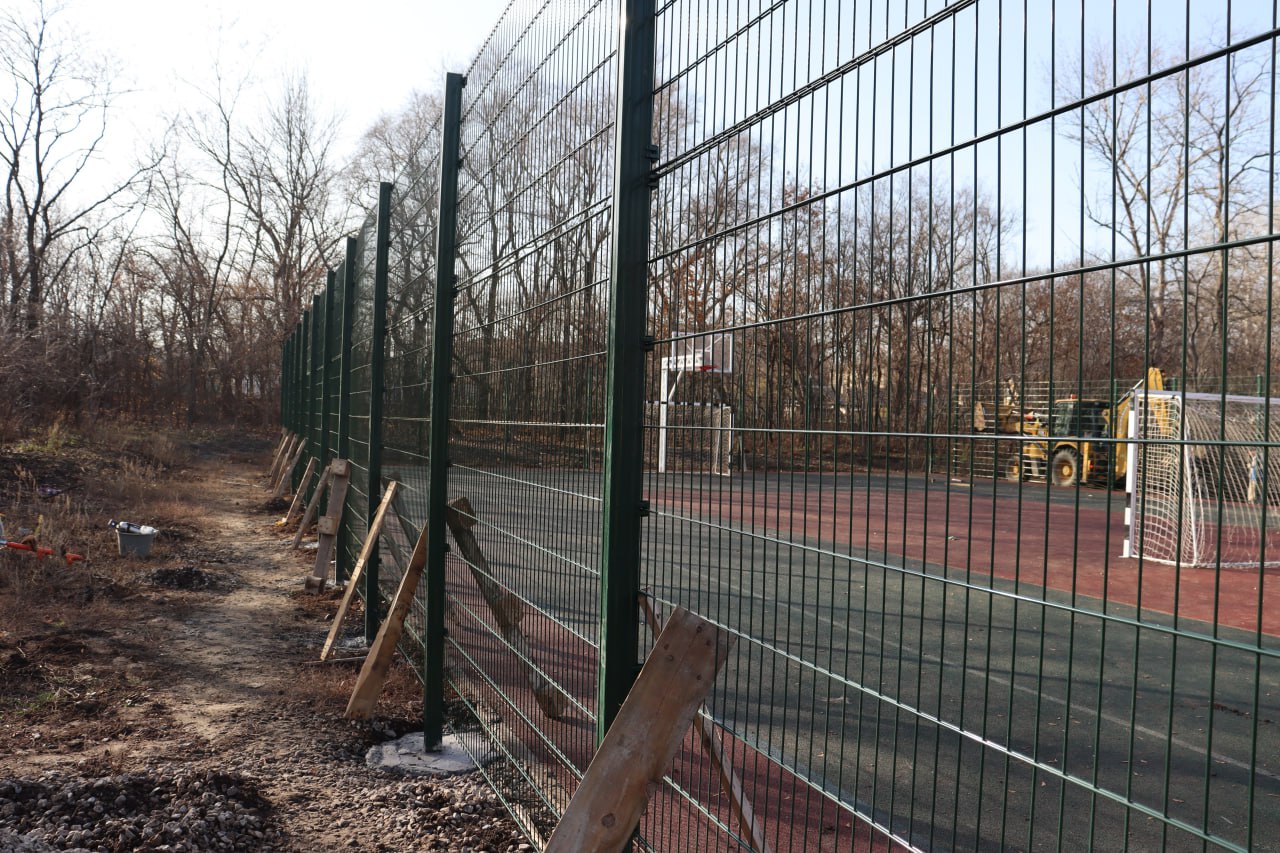 В парке «Горняк» ведутся работы по благоустройству современной спортивной площадки. Подрядчик уже установил секционное ограждение, которое позволит спортсменам безопасно тренироваться и играть, не опасаясь за мяч, улетающий в зеленую зону.