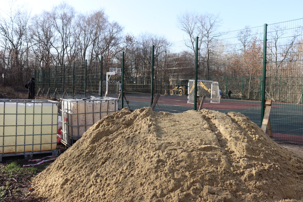 В парке «Горняк» продолжается благоустройство спортивной площадки