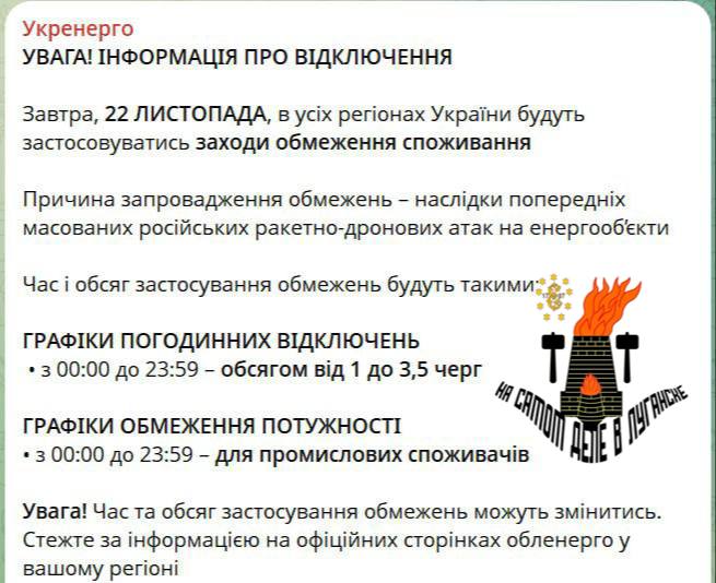 Отключения света будут во всех регионах – круглосуточно в объеме от 1 до 3,5 очередей.
