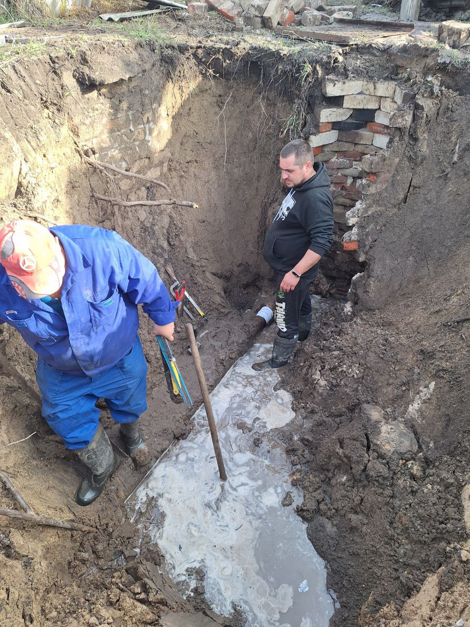ПУ ВКХ г. Рубежное по улице Лесная 4, устранили течь на водопроводе диаметром Ду 100 .
