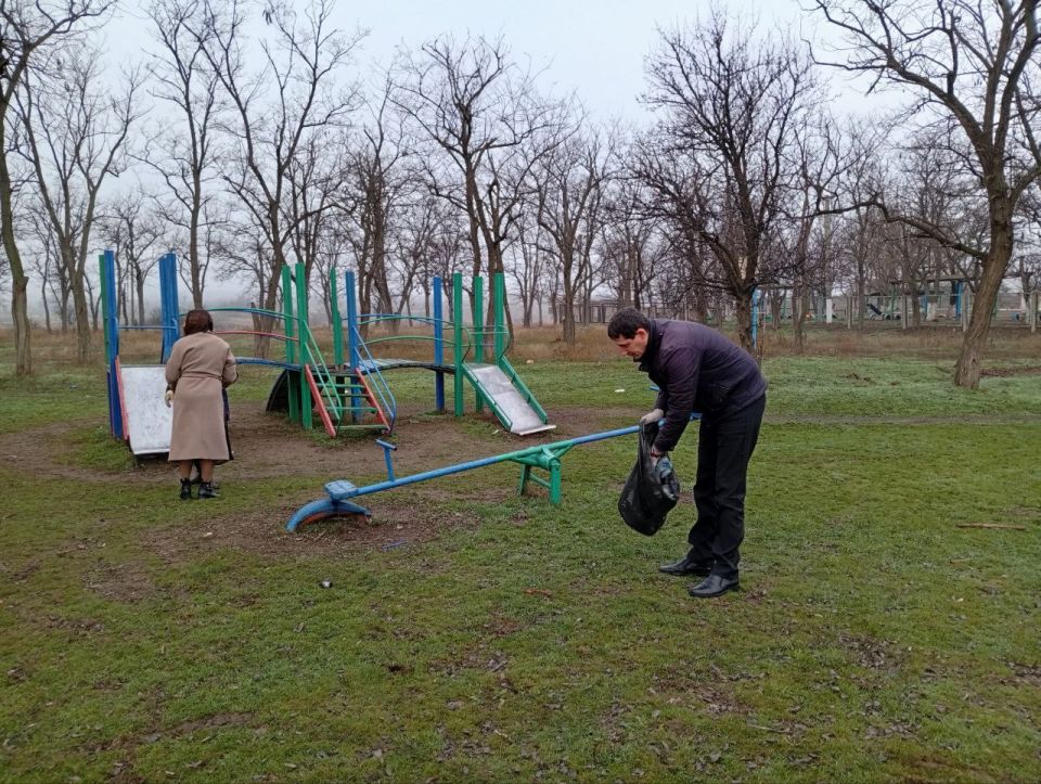 Работники отдела жизнеобеспечения пгт Новодарьевка провели работы по уборке мусора на территории остановки общественного транспорта, на центральной площади поселка, в парках по ул. Свердлова и ул. Вокзальная, на детских игровых площадках, а также на центральных улицах поселка.