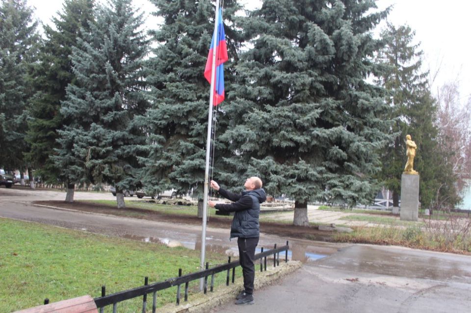 В День флага Луганской Народной Республики мы провели торжественное мероприятие на площади перед районным Дворцом культуры, собравшее жителей поселка, представителей власти, работников организаций и молодежь.