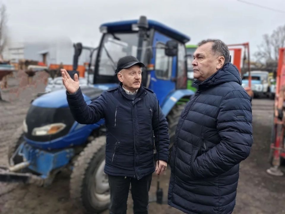 Директор Юрий Ледовской и главный инженер Юрий Рыбалко провели с Игорем Шмидтом осмотр служебной территории предприятия, проверили наличие антигололедной смеси и спецтехники, необходимой для поддержания дорожной безопасности в условиях неблагоприятных метеоусловий.