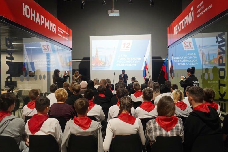 На площадке Молодежного центра ко Дню Конституции Российской Федерации состоялось торжественное мероприятие. В нем приняли участие ВрИП Главы округа Игорь Ковальчук, Председатель Совета Свердловского муниципального округа Борис Семиошко, руководитель делегации Красноярского края в нашем округе Виталий Панасенко, начальник отдела по вопросам миграции ОМВД России "Свердловский" капитан полиции Яна Крупа, специалист по организации работы Движения Первых в Свердловском муниципальном округе Алина Киркитадзе и учащиеся школ.