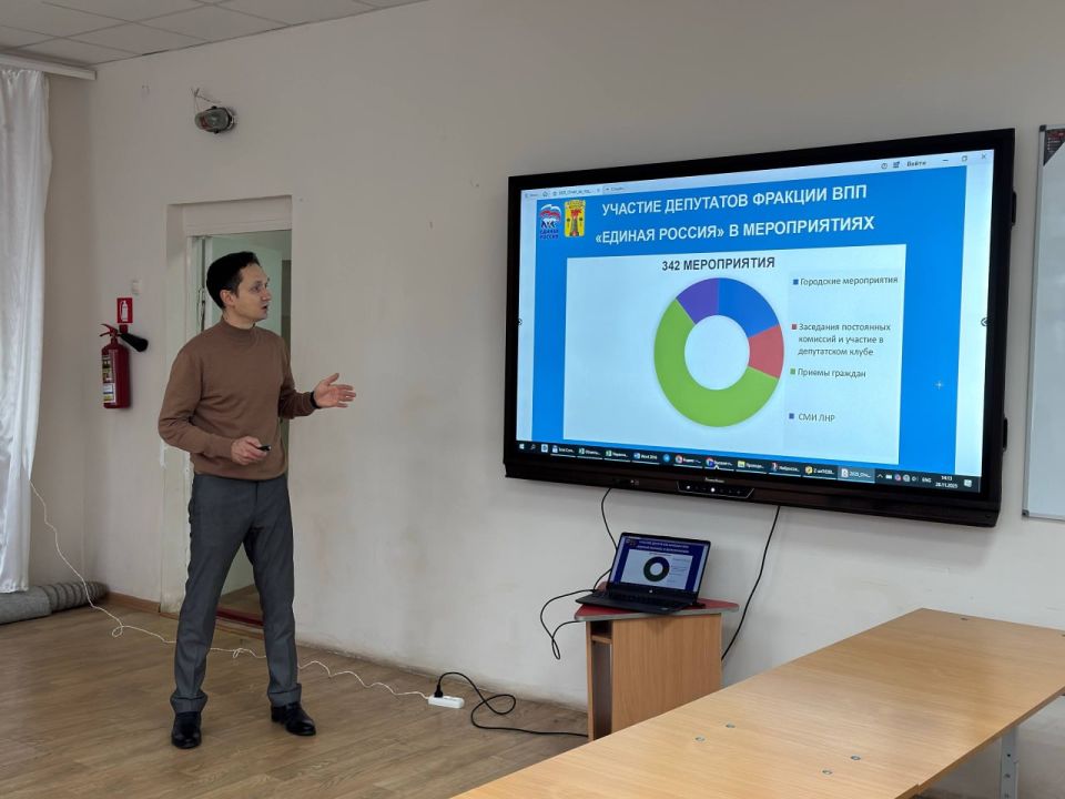 В центре внимания - информация о деятельности фракции «Единая Россия» в Совете городского округа Луганска, реализованные в городе проекты, а также планы развития Луганска и территории на 2026 год.