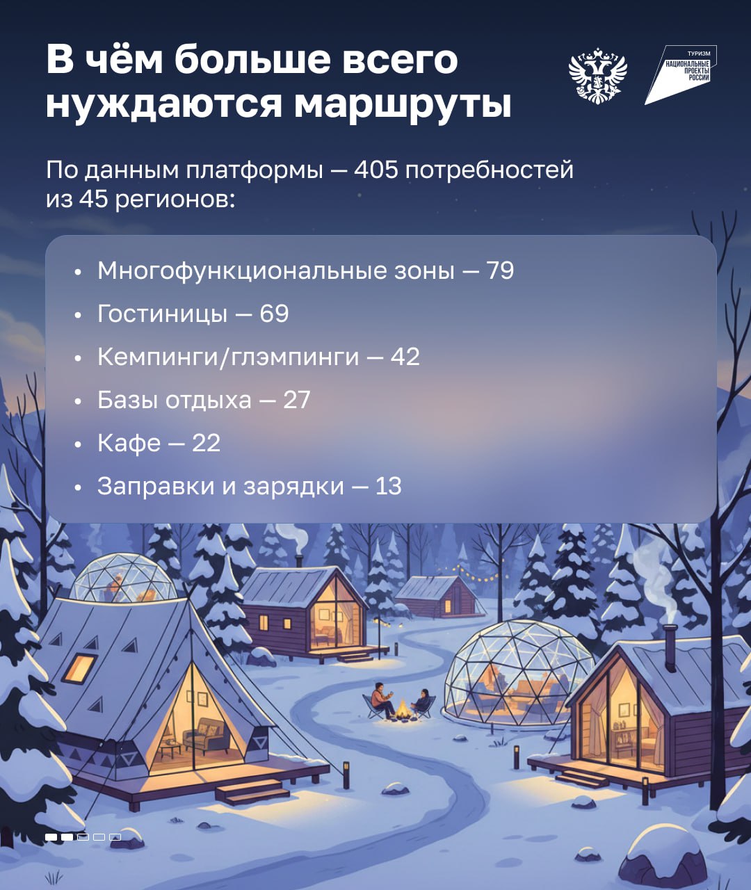 Автопутешествия стали одним из главных трендов: уже около 40% туристов выбирают поездки на машине. Государство активно поддерживает направление — разработано 120 автотурмаршрутов, ремонтируются дороги, формируются точки притяжения вдоль трасс.