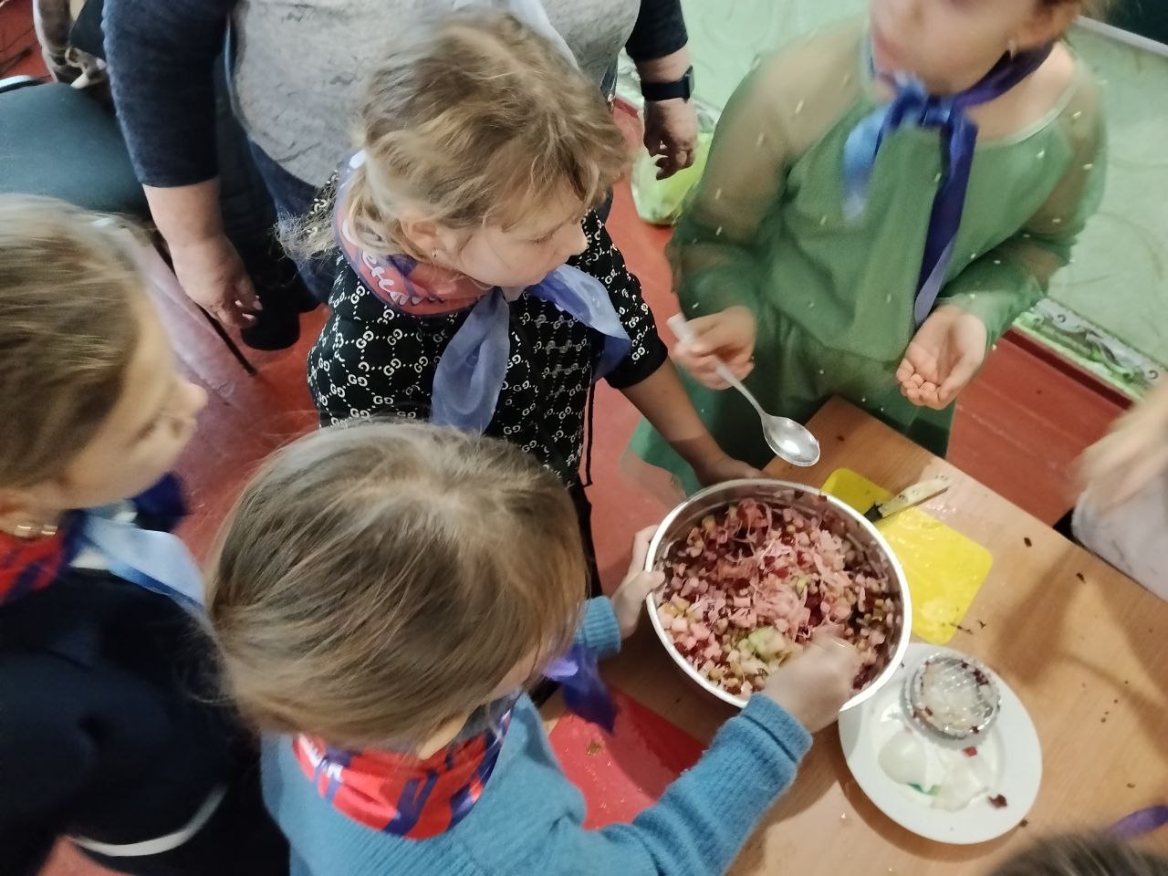 Ребята из отряда «Орлята России» ГБОУ ЛНР Литвиновского УВК отправились в увлекательное путешествие, узнав о таинстве украшения ёлки, о её значении в зимних торжествах. А неповторимое кулинарное приключение по регионам России, расширило горизонты знаний о национальных блюдах и обычаях, укоренившихся в разных уголках страны. В теплой атмосфере участники мероприятия сотворили старинное блюдо – винегрет.