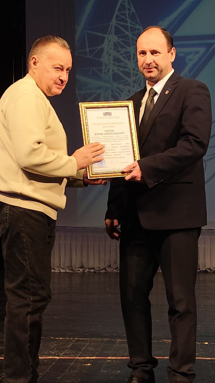 По поручению Председателя Народного Совета ЛНР Дениса Николаевича Мирошниченко передал поздравления от всего депутатского корпуса с праздником и вручил Благодарность Народного Совета Луганской Народной РеспубликиПолинюку Андрею Анатольевичу - электромонтеру по эксплуатации распределительных сетей, а также Благодарственное письмо Председателя Народного Совета Луганской РеспубликиТитову Юрию Анатольевичу - электромонтеру оперативно-выездной бригады.
