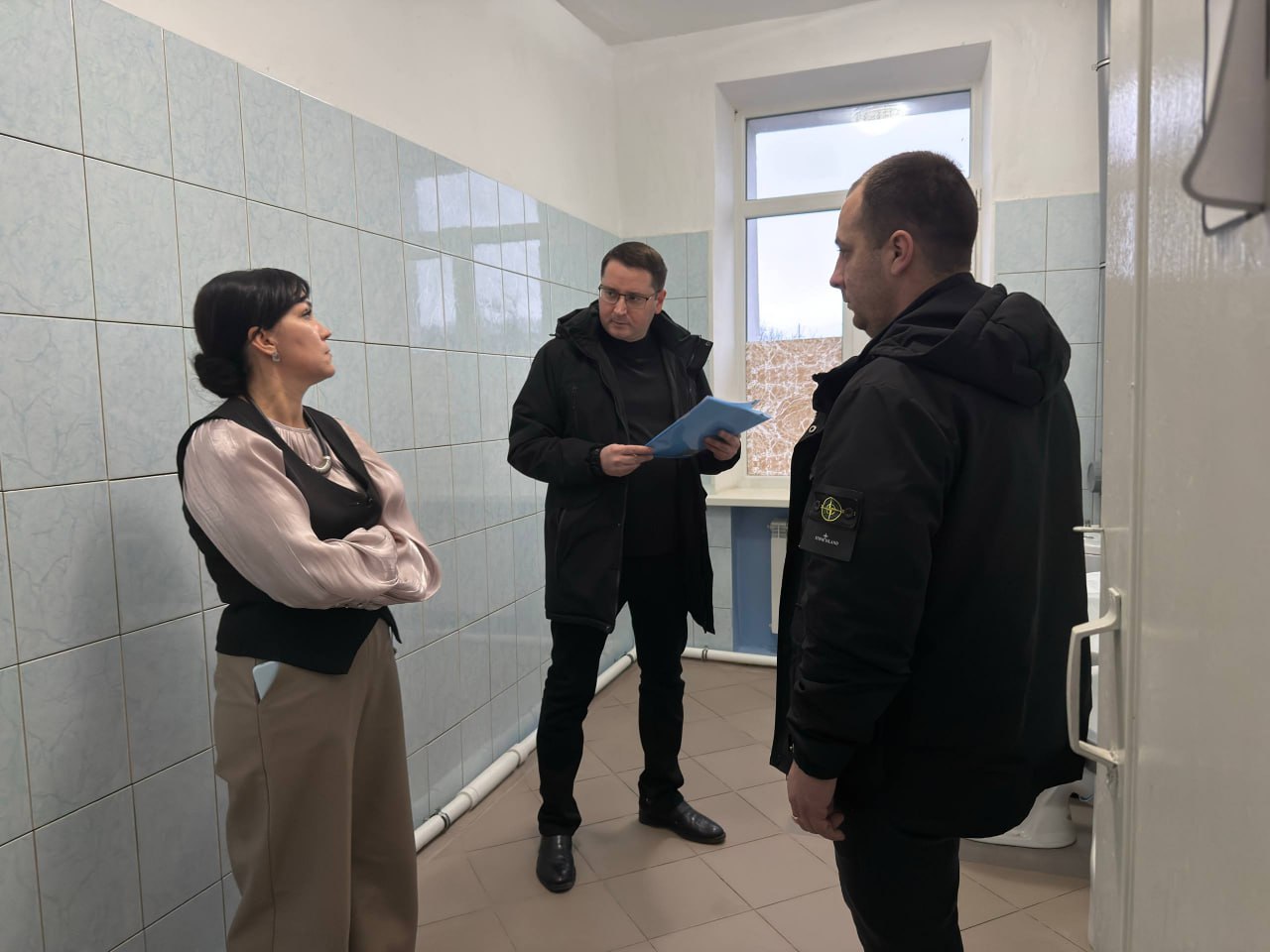Заместитель Главы Администрации Марковского муниципального округа ЛНР Андрей Клименко и заместитель начальника отдела жилищно-коммунального хозяйства, архитектуры и градостроительства Администрации Сергей Мельник, совместно с представителем шеф-региона Ивановской области Андреем Ильичевым, курирующим вопросы восстановления социально-значимых объектов на территории Марковского округа, провели плановый осмотр ГБОУ ЛНР "Кабычевская общеобразовательная школа" после наступления зимнего периода.