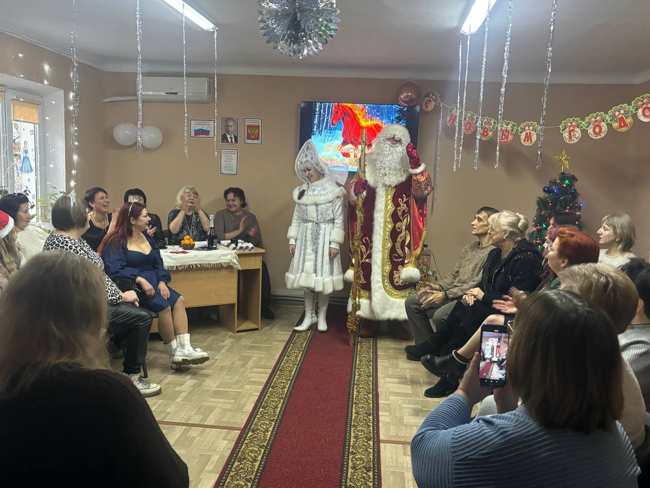 Сегодня в Брянковском комплексном центре социального обслуживания населения царила атмосфера настоящего праздника. Зал был украшен, а нарядная ёлка сияла огнями, создавая волшебное настроение. Сотрудники центра вместе с гостями из фонда "Защитники Отечества" с энтузиазмом участвовали в предновогодних мероприятиях: читали стихи, пели песни и водили весёлый хоровод.