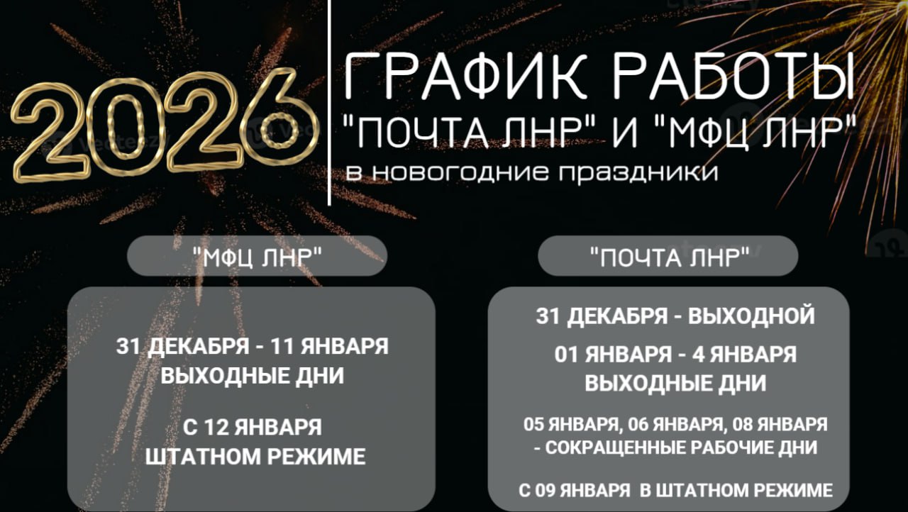 График работы отделений "Почты ЛНР" и "МФЦ ЛНР" в период праздников (см