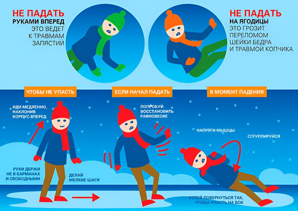 Будьте осторожны на гололёде! Ходите медленно, делайте мелкие шаги. Обувь с хорошей подошвой спасёт от падений.