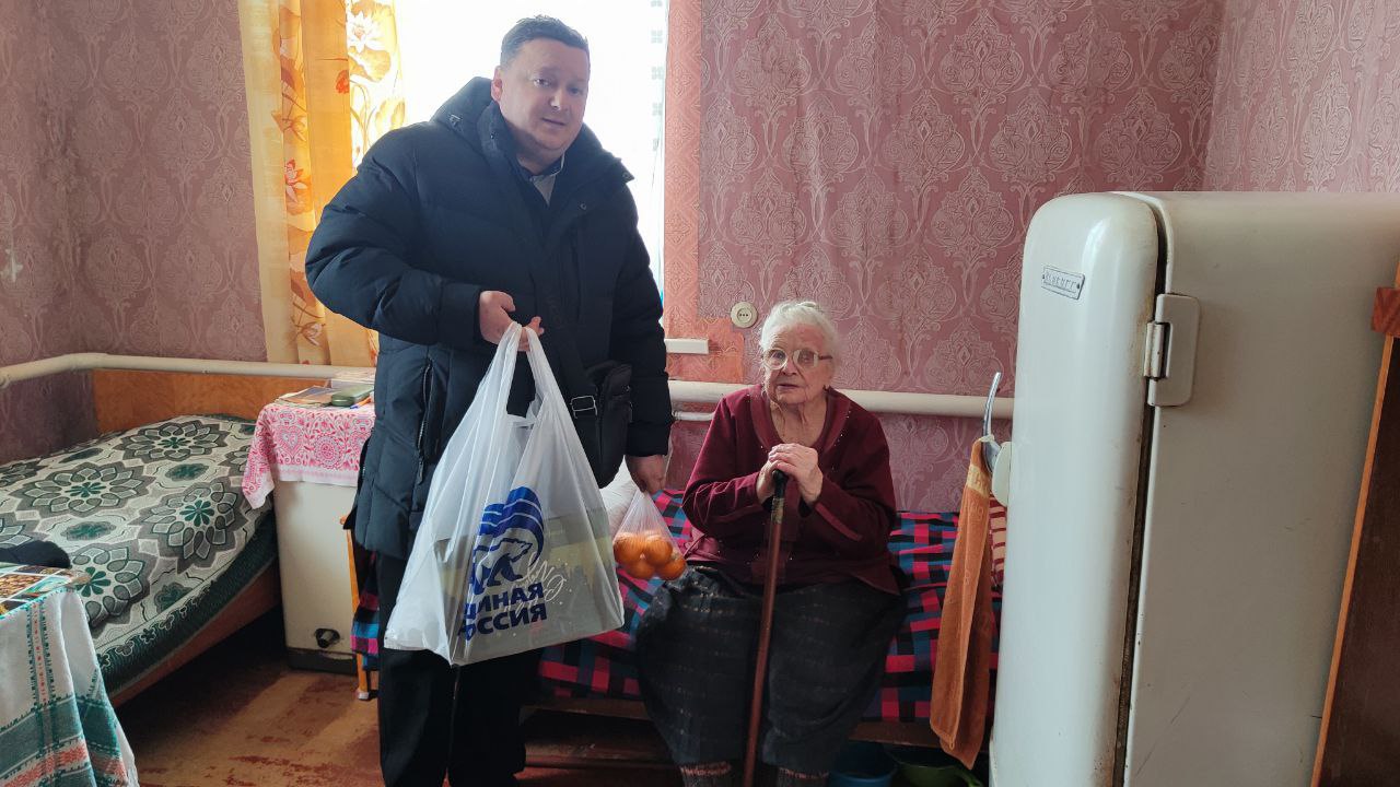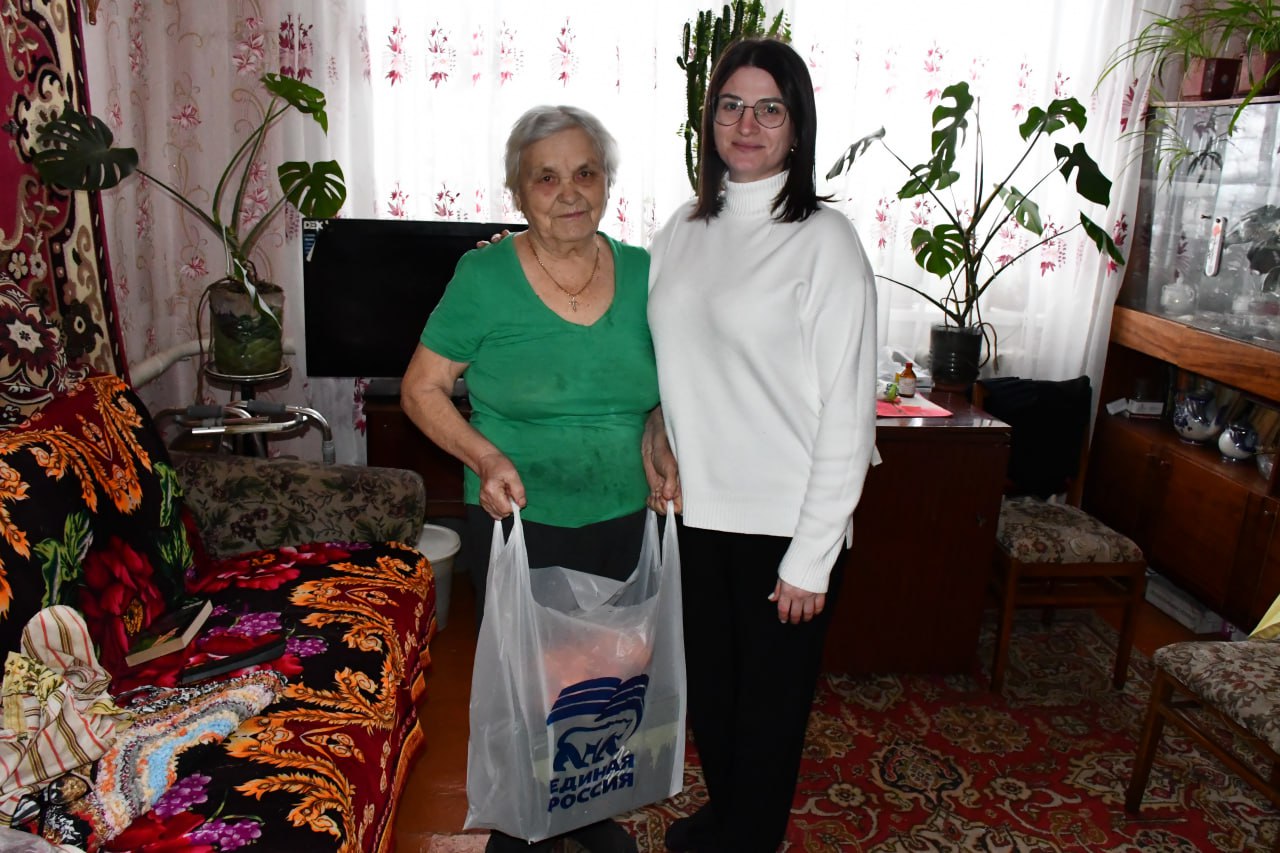 Единороссы привезли ветеранам новогодние продуктовые наборы, предоставленные Отдельным гаубичным артиллерийским дивизионом и фрукты.