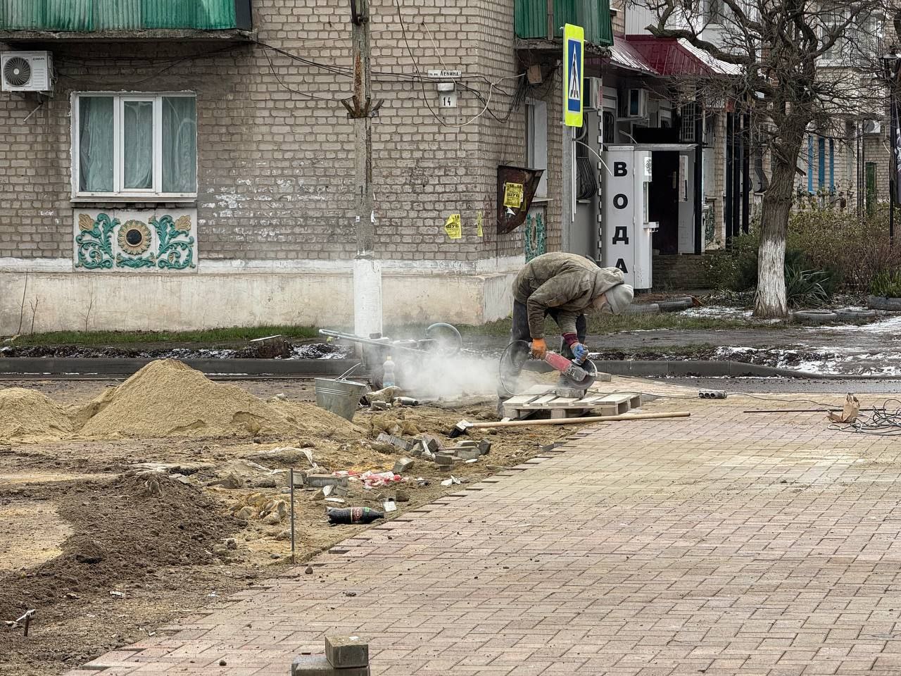 Также ведутся работы по укладке тротуарной плитки общей площадью около 500 квадратных метров.