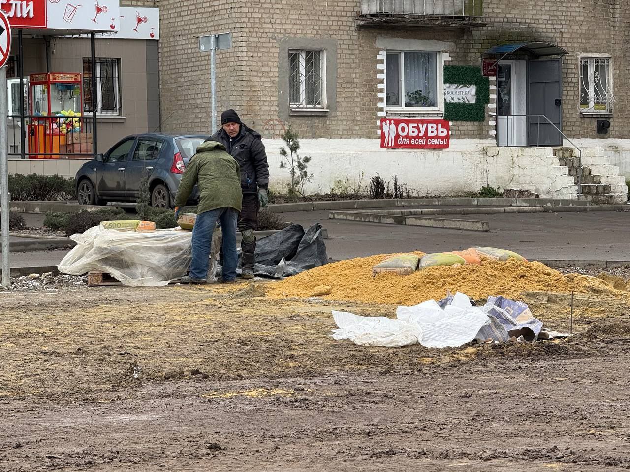 На текущий момент выполняются демонтаж и подготовка основания. Выполнен демонтаж асфальтобетонного покрытия и устройство песчаного основания с тщательным уплотнением.
