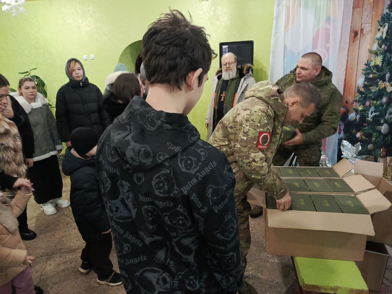 В пгт Новодарьевка военнослужащие железнодорожных войск Российской Федерации в преддверии празднования новогодних и рождественских праздников подарили праздничное настроение детям участников СВО, погибших при исполнении служебного долга. Военнослужащие, совместно с начальником отдела жизнеобеспечения пгт Новодарьевка, поздравили ребят с наступающим Новым годом и вручили им новогодние подарки.