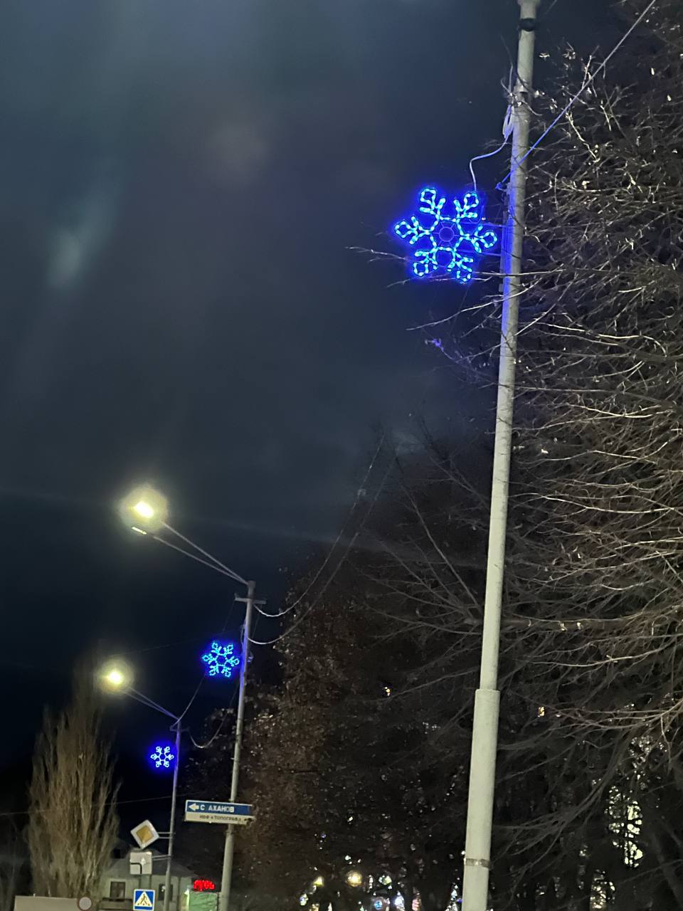 Эти изящные украшения переданы в МБУ «Кировский комбинат коммунальных услуг» и размещены на столбах на улицах — именно там, где пожелала Ульяна Владимировна. Светящиеся снежинки искрятся на фоне зимнего вечера, передавая настоящее новогоднее волшебство: радость, тепло и единение. Проходя мимо, каждый житель чувствует приближение праздника и гордость за наш уютный Кировск.
