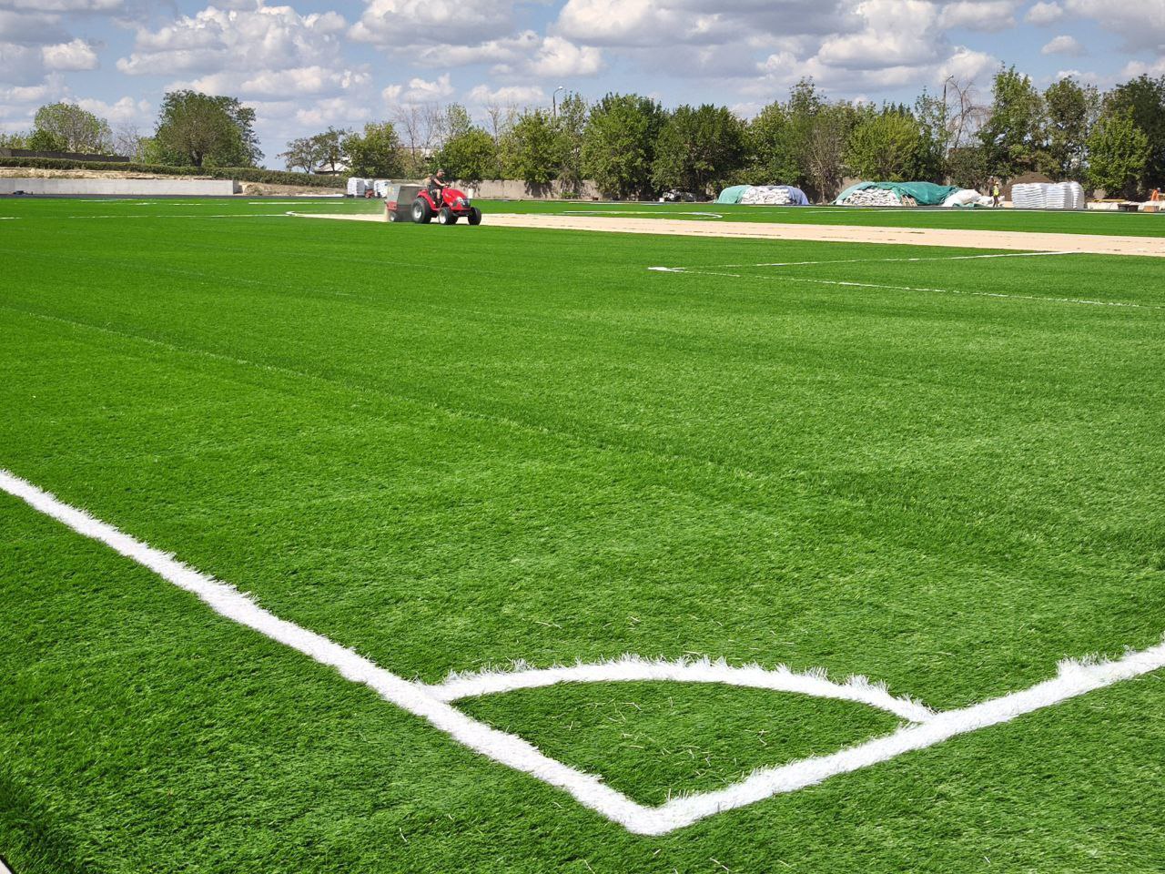 На поле уложено современное искусственное покрытие с дренажной системой.