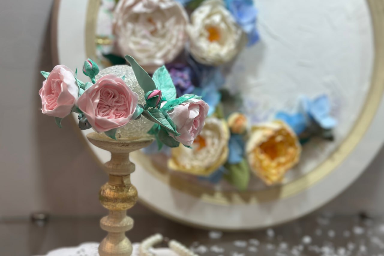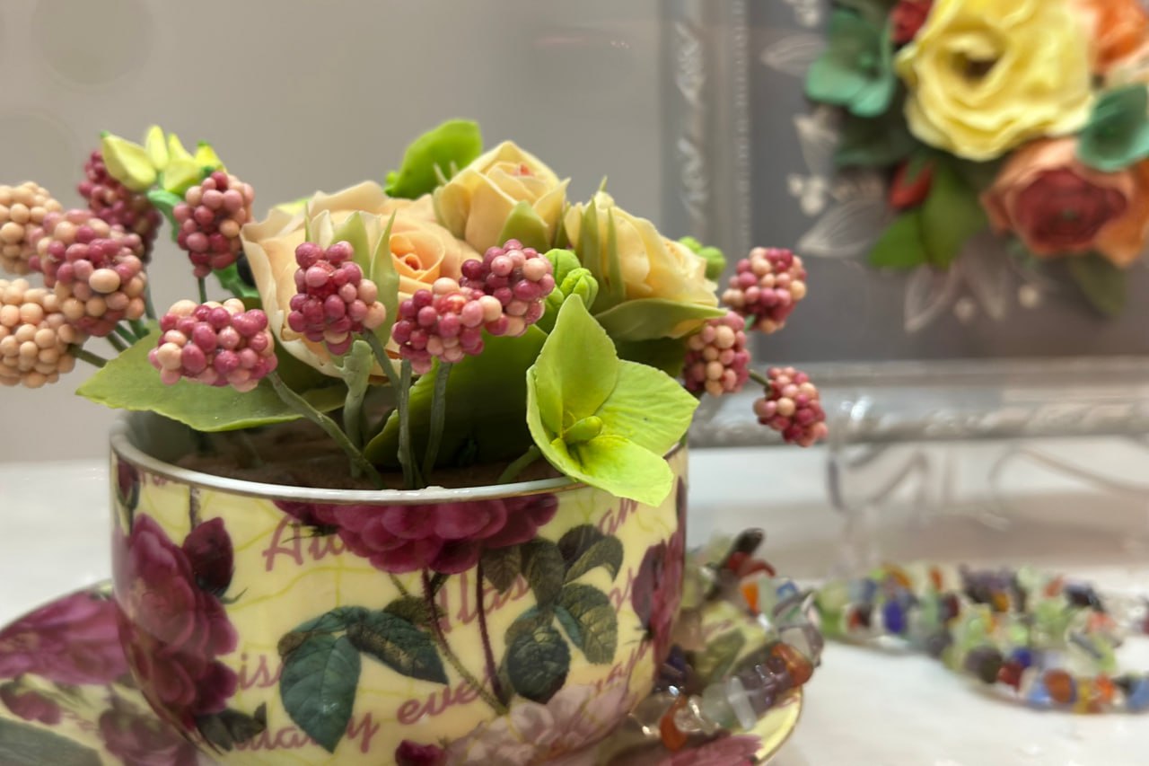 Цветы из холодного фарфора выглядят как живые: тончайшие лепестки, реалистичные оттенки, изящные композиции — и всё это создано вручную. Хрупкие на вид, но удивительно прочные, они дарят ощущение лета посреди зимы