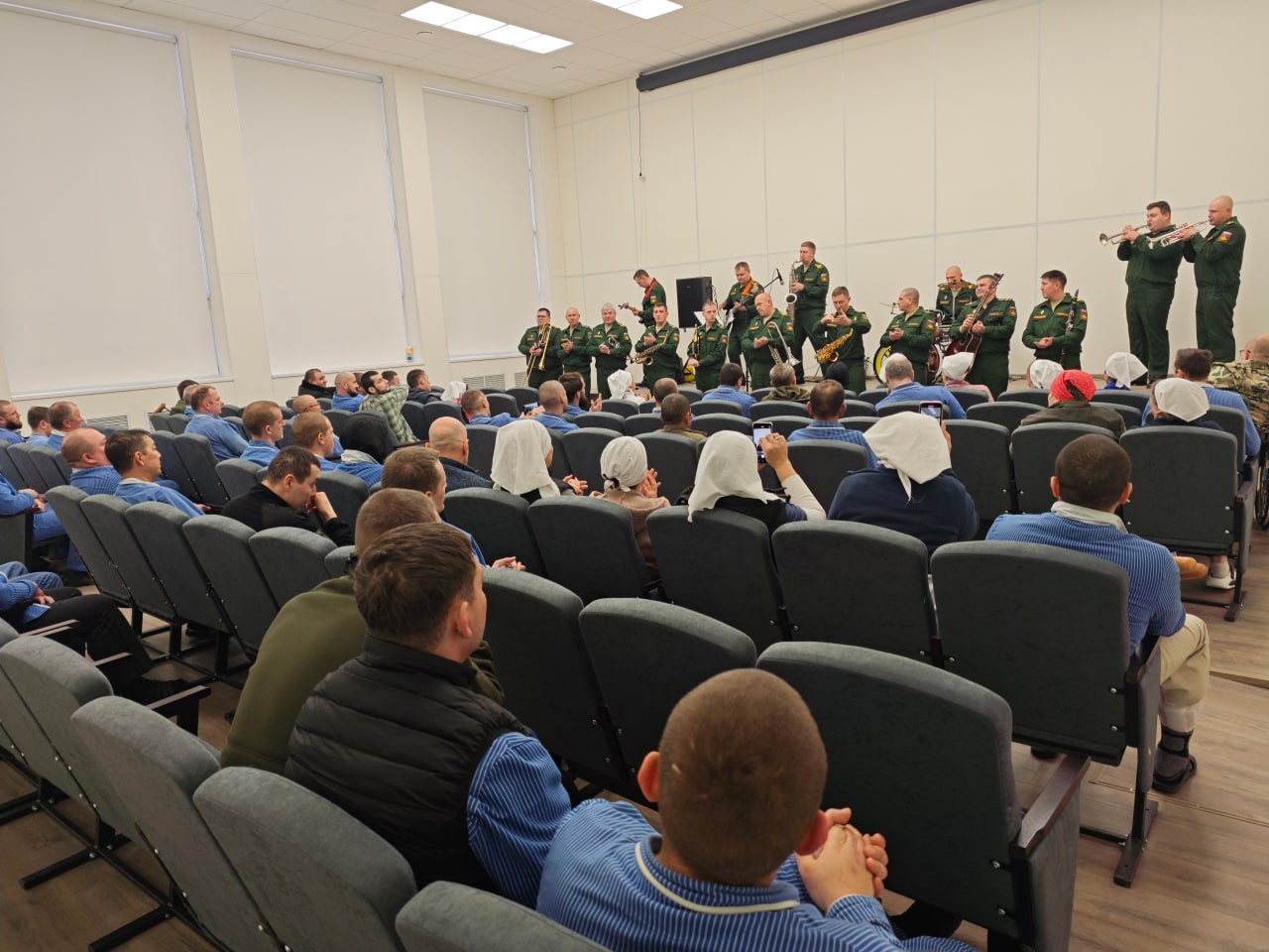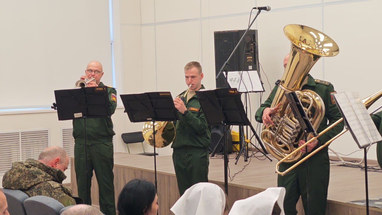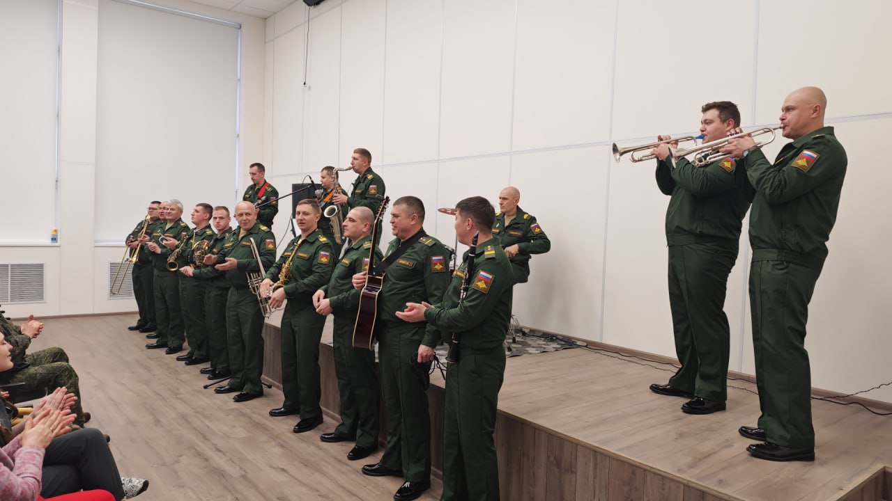 Под руководством старшего лейтенанта Валентина Злодиева музыканты исполнили целую программу: от бодрых советских маршей и классических произведений до народных мелодий и современных патриотических песен.
