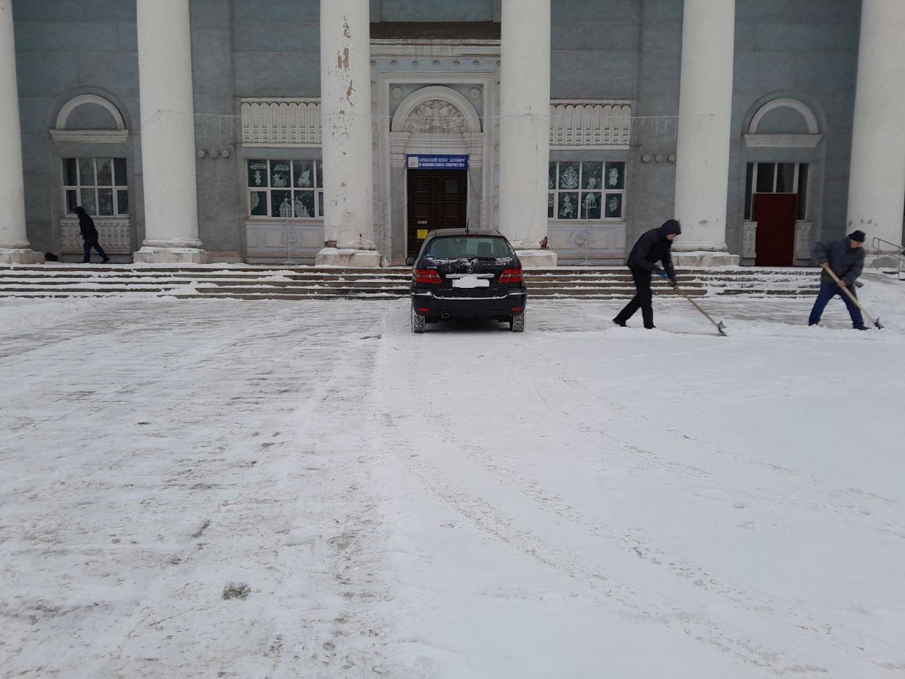 Вооружившись инвентарем для уборки снега, наши специалисты приступили к расчистке пешеходных зон.
