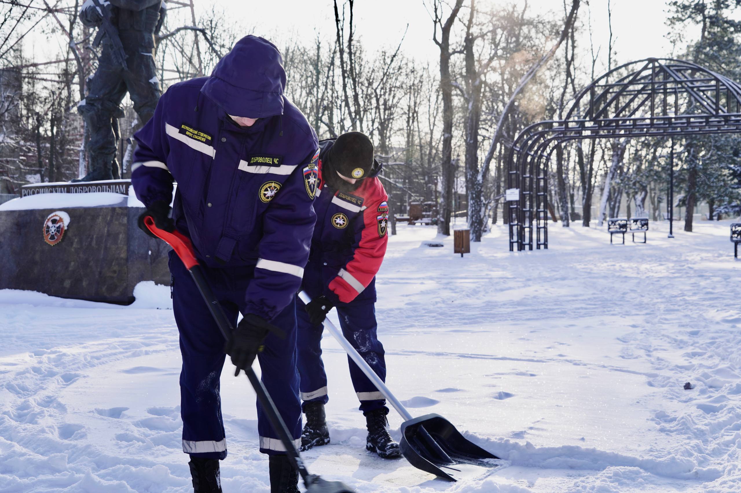 Особое внимание студенты-спасатели уделили Скверу имени «Молодой гвардии». Их задачей было не просто сгрести снег, но и обеспечить безопасные и чистые дорожки для прохода жителей и посетителей парка.