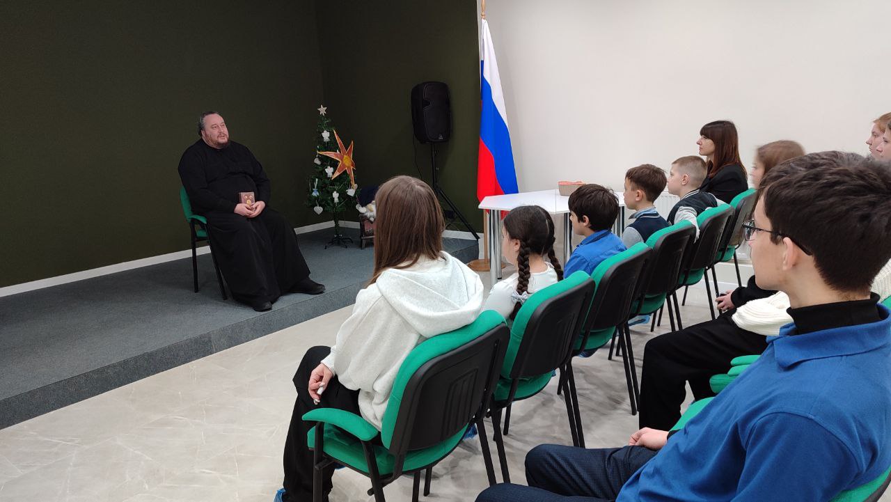 Протоирей Роман Колодка - настоятель Свято-Преображенского храма и благочинный Перевальского церковного округа, интересно поведал ребятам историю праздника, посвящённого событию из Евангелия — крещению Иисуса Христа в водах реки Иордан пророком Иоанном Предтечей.