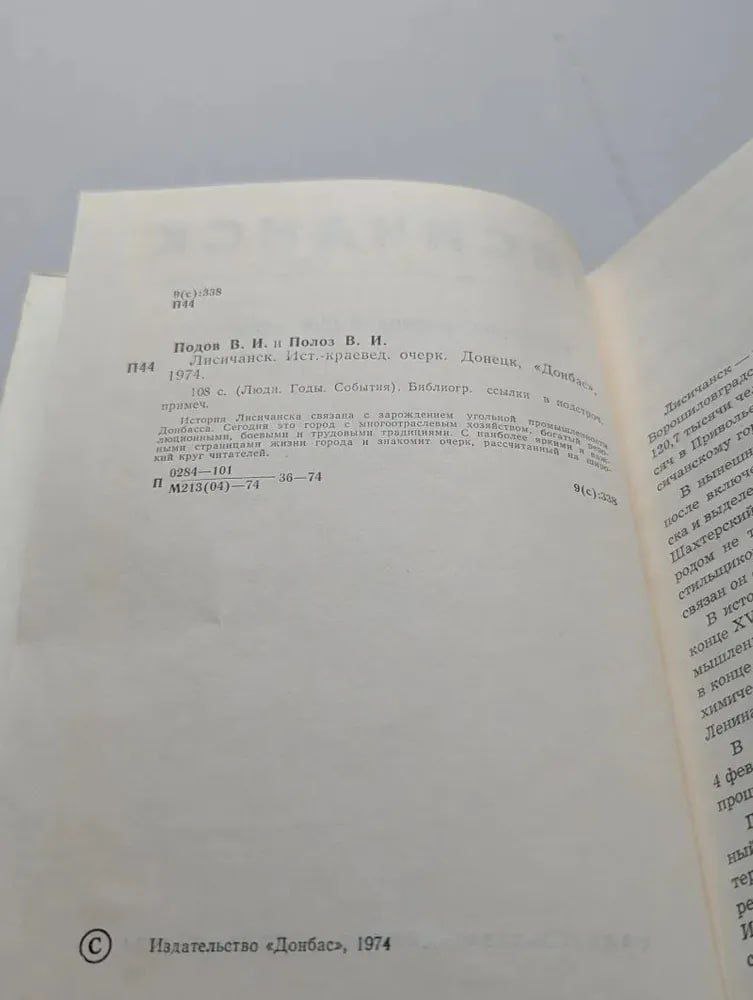 В 1974 году в издательстве "Донбасс" была выпущена книга "Лисичанск" из серии "Люди. Годы. События. "