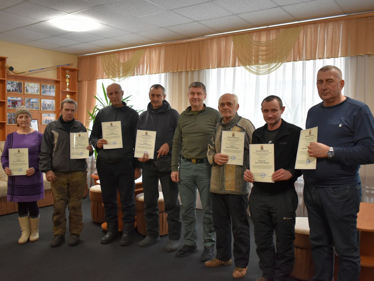 Вручил благодарности работникам МБУ Центр «Благоустройство» — за ответственность, трудолюбие и преданность делу в праздничные дни.