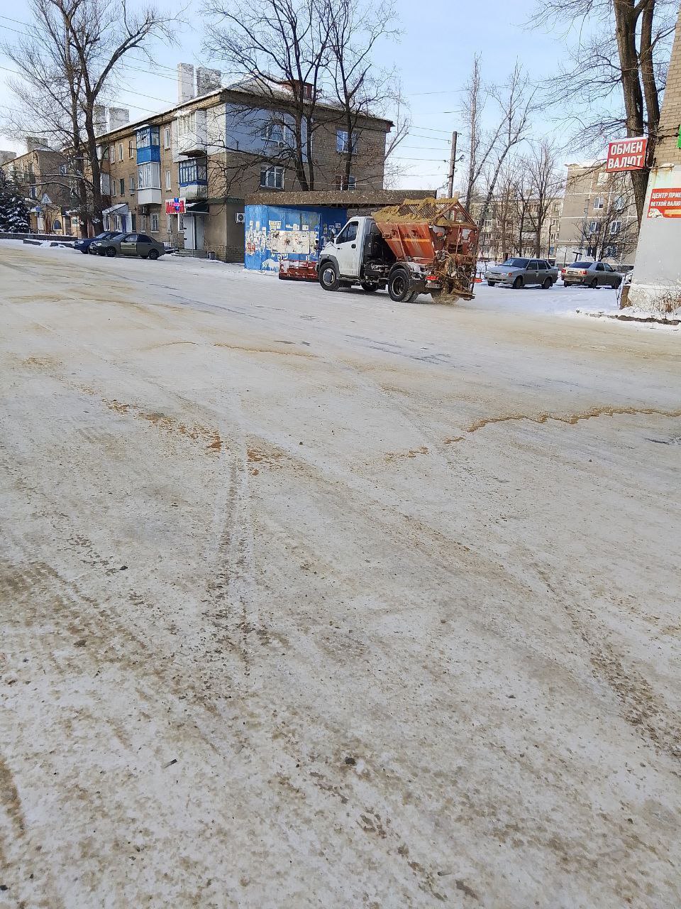 Сегодня МУП "СКАТ" обрабатывает дороги песко-соляной смесью.