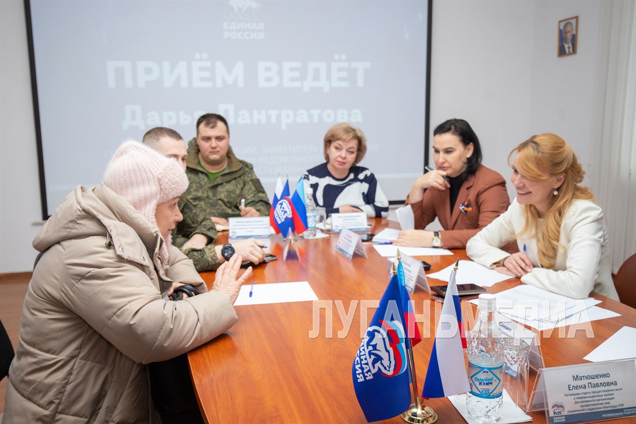В Луганской региональной общественной приемной председателя партии «Единая Россия» Д.А. Медведева сенатор Совета Федерации от Луганской Народной Республики Дарья Лантратова встретилась с жителями столицы и других населенных пунктов региона.