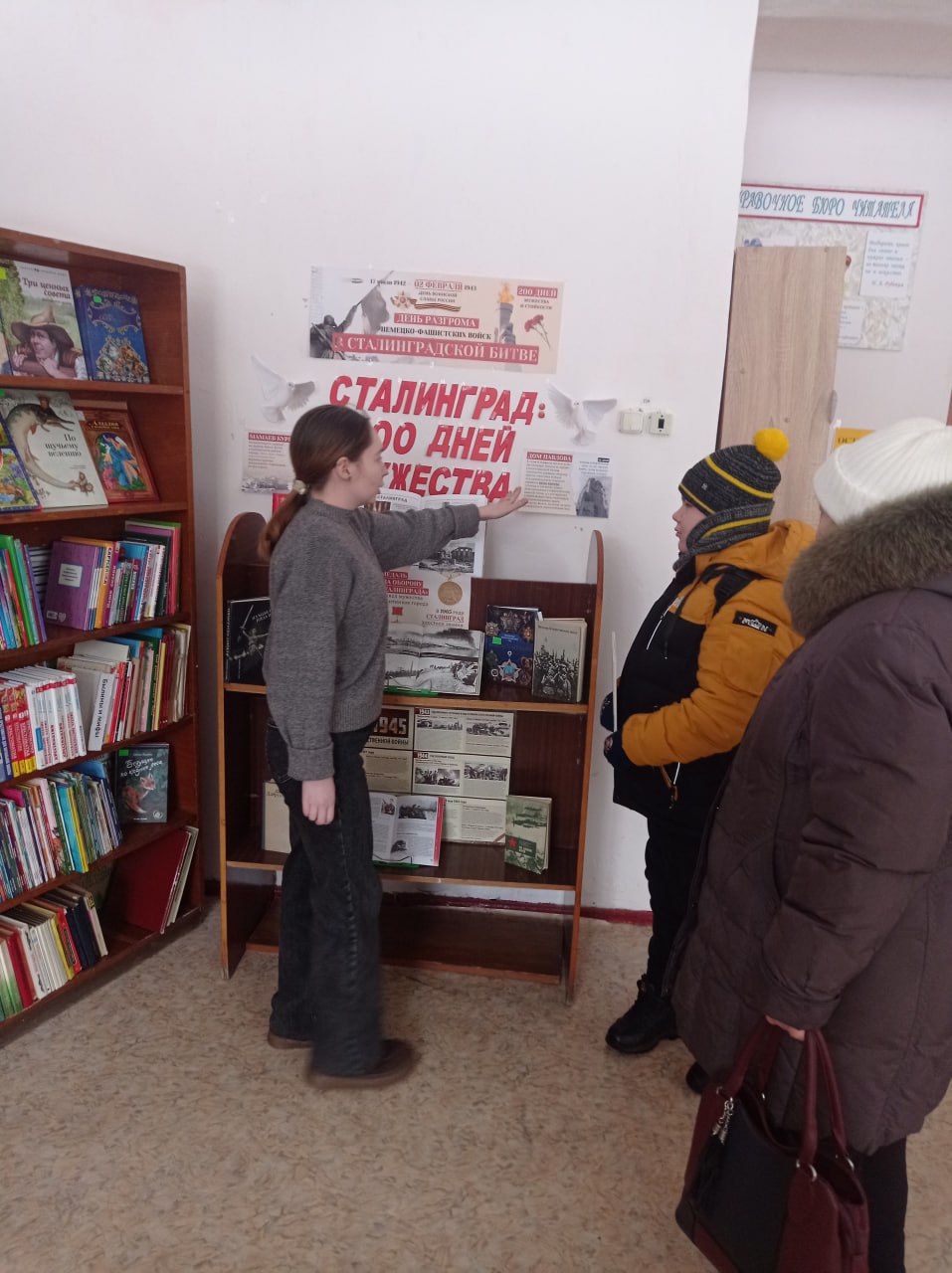 Посетители узнали о подвиге Якова Павлова и его товарищей, которые в течение 58 дней обороняли дом, принимая на себя по 12-15 атак вражеских танков и пехоты, поддерживаемых авиацией и артиллерией. Библиотекарь рассказала читателям и о битве на Мамаевом Кургане, которая продолжалась 135 суток. Сегодня в память о советских воинах на этом месте возвышается скульптура «Родина-мать».