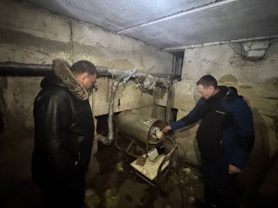 В ходе осмотра было проинспектировано качество утепления системы водоснабжения и температурного режима в подвальном помещении, и определено что произошло замерзание подводящего к дому водопровода, который выполнен в лотковой прокладке. Для устранения аварии силами Краснолучского департамента ГУП ЛНР «Лугансквода» установлен электротеплонагнетатель.