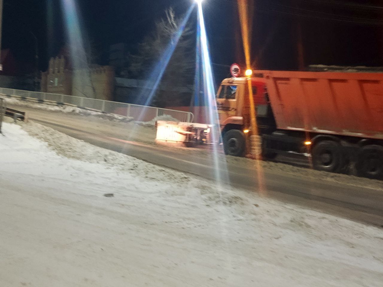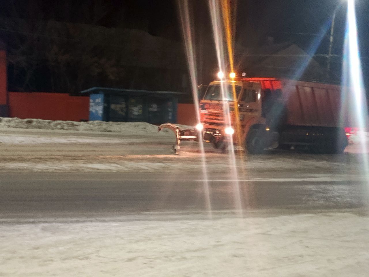 Мягкий снег позволяет сотрудникам МУП "СКАТ" более эффективно очистить автомобильные дороги от остатков снежной наледи.