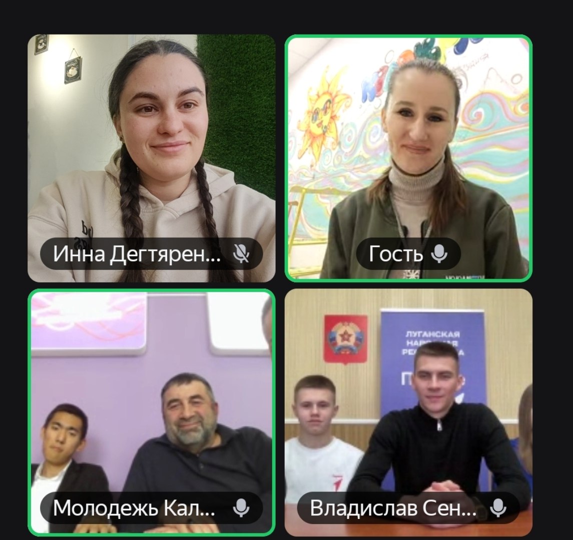 В рамках сотрудничества Республики Калмыкия и города Антрацит состоялась видеоконференция, участниками которой стали: депутата Совета Антрацитовского МО Владислава Сенецкого, председателя молодежного совета Инну Дегтяренко, представителей «Молодой Гвардии» и «Движения первых», а также сотрудников Республиканского центра молодежи — Аслудина Калабегова и Алдара Алиева.