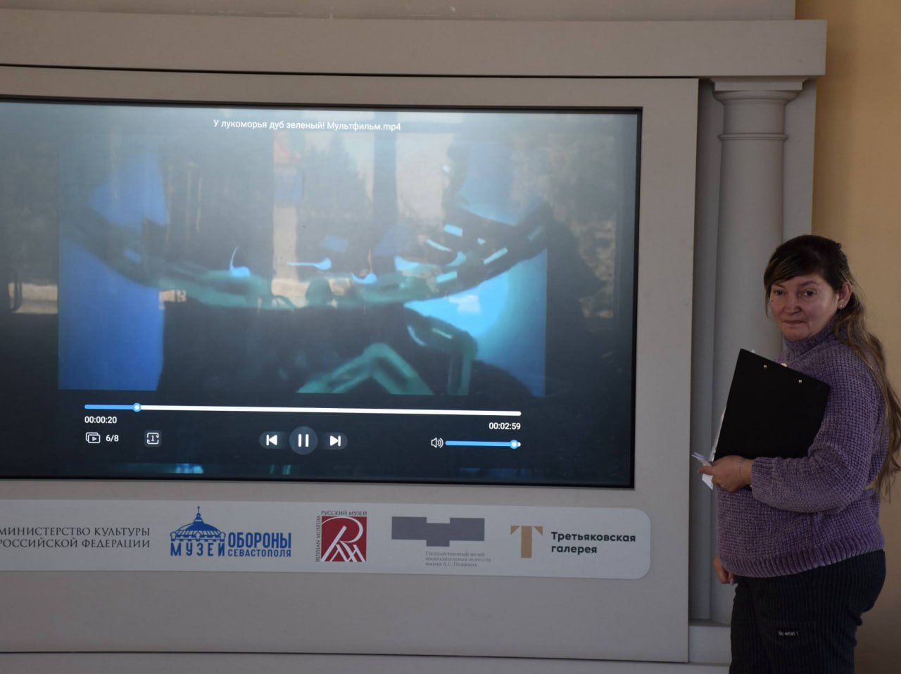 Затем детвору ждал просмотр красочного мультфильма, созданного по мотивам стихотворения У лукоморья дуб зеленый.