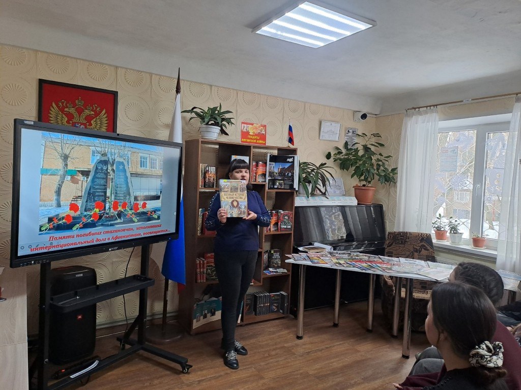 Были представлены книги об Афганской войне, прозвучали отрывки из документального издания «Афганская Голгофа». Особое внимание уделили теме преемственности поколений: в библиотеке оформлена выставка новых поступлений по военной истории России — о мужестве, стойкости и верности долгу.