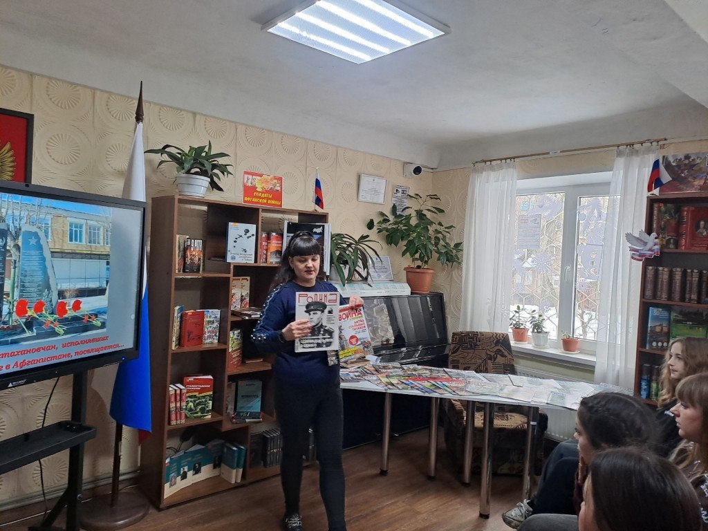В библиотеке-филиале № 1 для учащихся Стахановской средней школы № 9 имени А. Стаханова состоялся урок мужества «Афганистан: горячие секунды жизни».