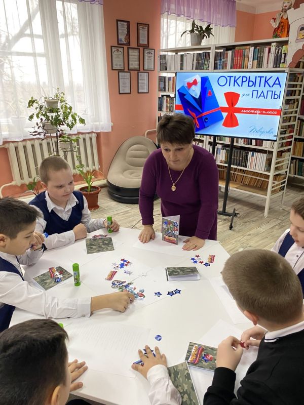 В преддверии праздника Дня защитника Отечества в библиотеке № 3 пос. Червоный Прапор прошел мастер-класс «Открытка для папы»