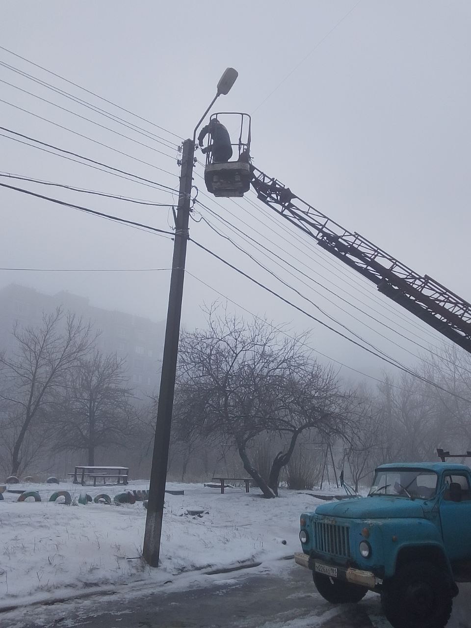 Специалисты МУП «Горсвет» продолжают плановые работы по обслуживанию и ремонту сетей наружного освещения в Красном Луче: