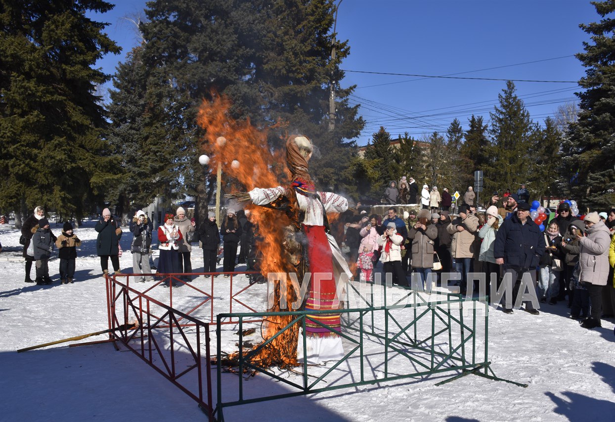 Зрители с удовольствием присоединились к празднику: пели, танцевали, водили хороводы, участвовали в конкурсах и спортивных соревнованиях. После символичной передачи ключа Зимой Весне, они дружно сожгли чучело Масленицы.