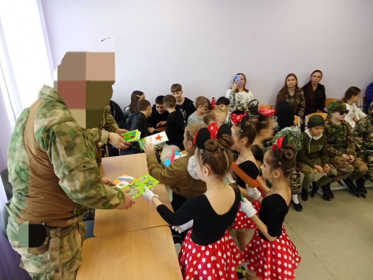 В рамках мероприятия состоялось поздравление военнослужащих. Детьми, посещающими творческие объединения, были вручены поздравительные открытки, изготовленные собственными руками в рамках тематических занятий декоративно-прикладного творчества.